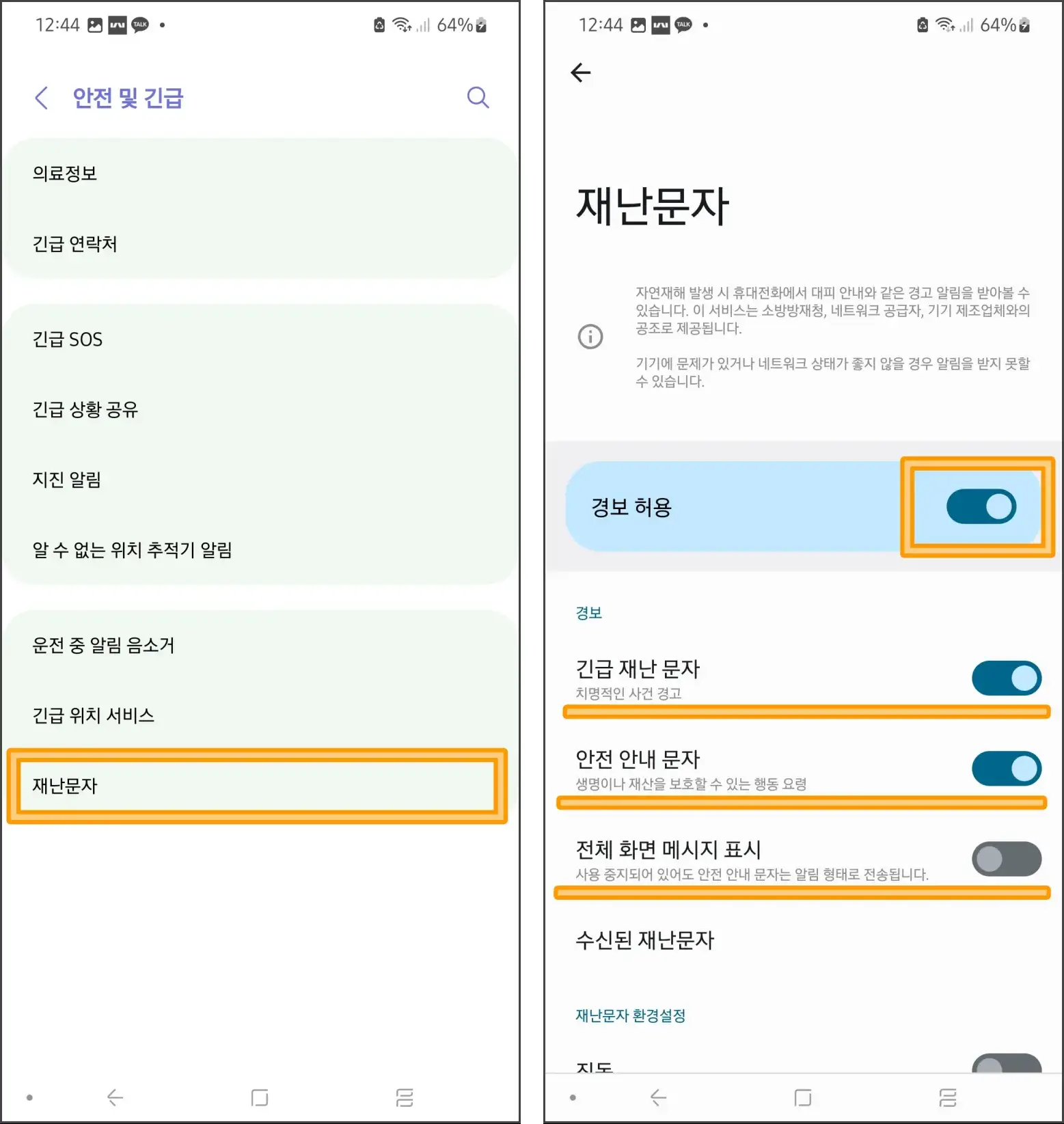 재난문자 비활성화 방법