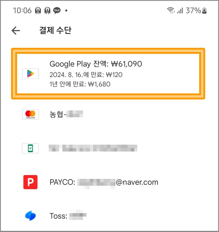 - Google Play 잔액 확인